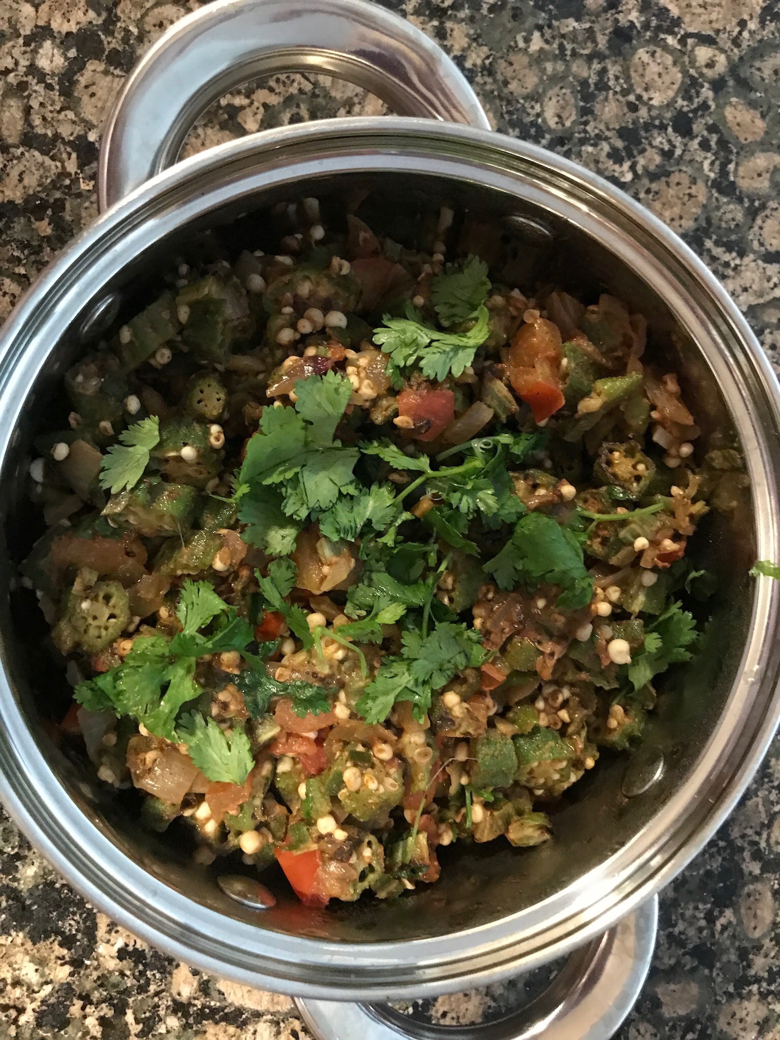 1. YUM especially because i know your bhindi is really good lol Do you think I can use frozen okra? I never seem to find fresh in houston close by. When mom visited she brought her own okra form subzi mandi to make this lol
