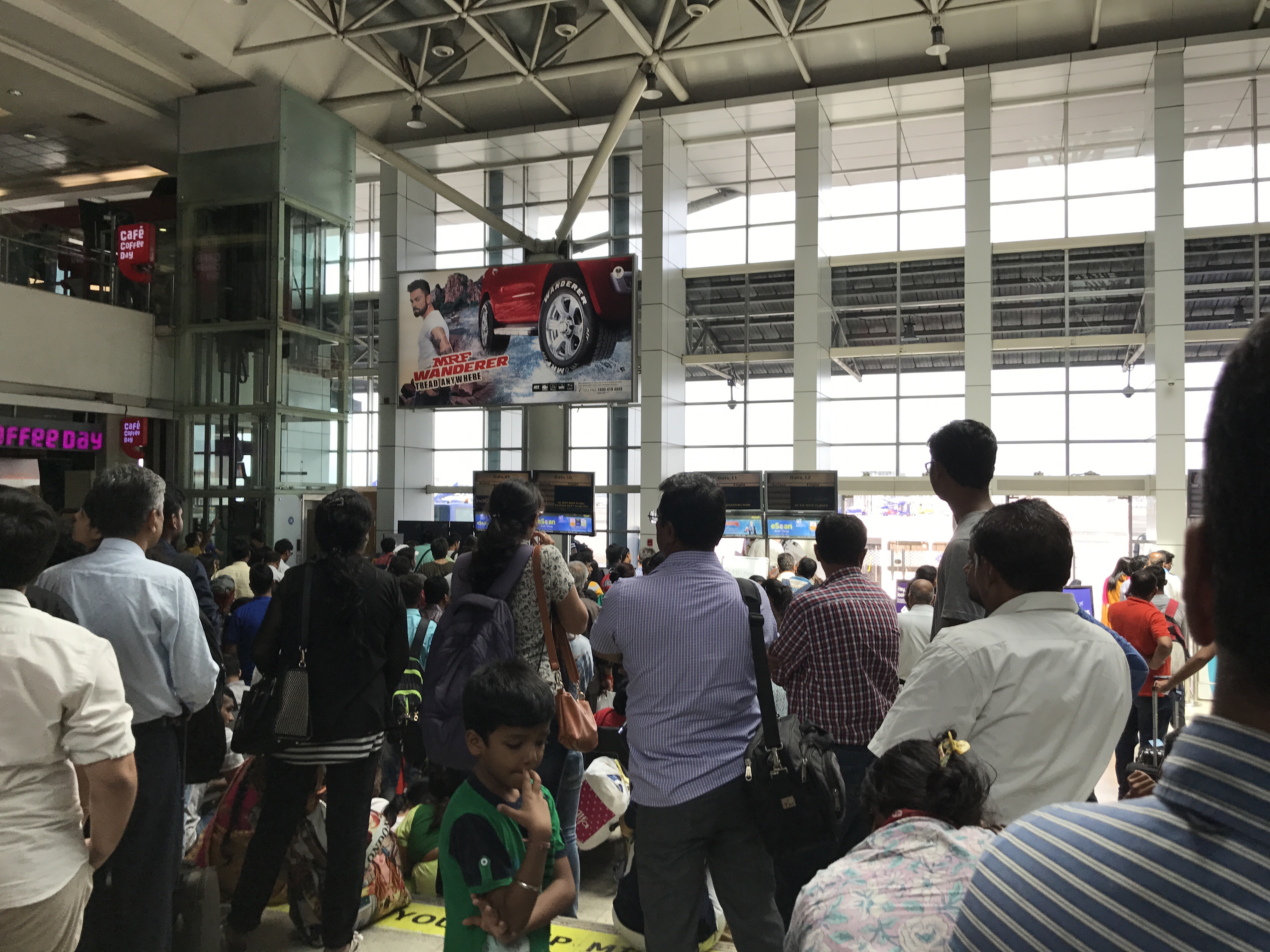 I completed my security check to enter into Mumbai domestic airport so I could board a flight to Bangalore. The waiting area in the airport was overcrowded. I have never seen so much crowd waiting to board .