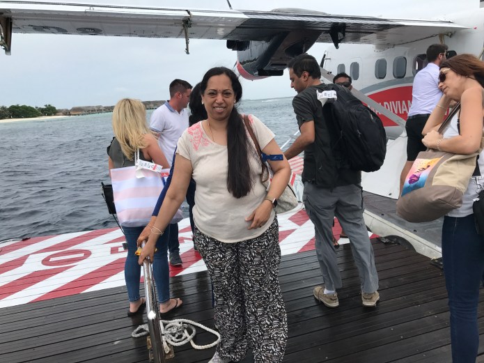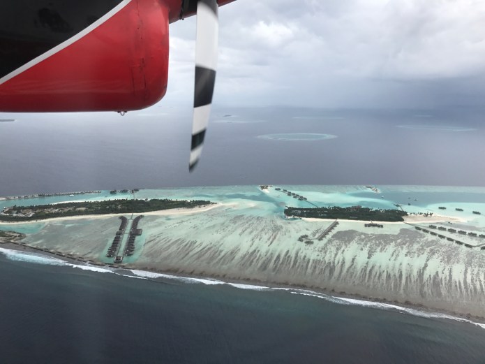 After about 35 to 40 minutes ride on the sea plane, it lands on the ocean close to a moving platform. We wait for the boat to arrive so they could pick us up to the island we are going to stay in for the next 2 nights and 3 days.