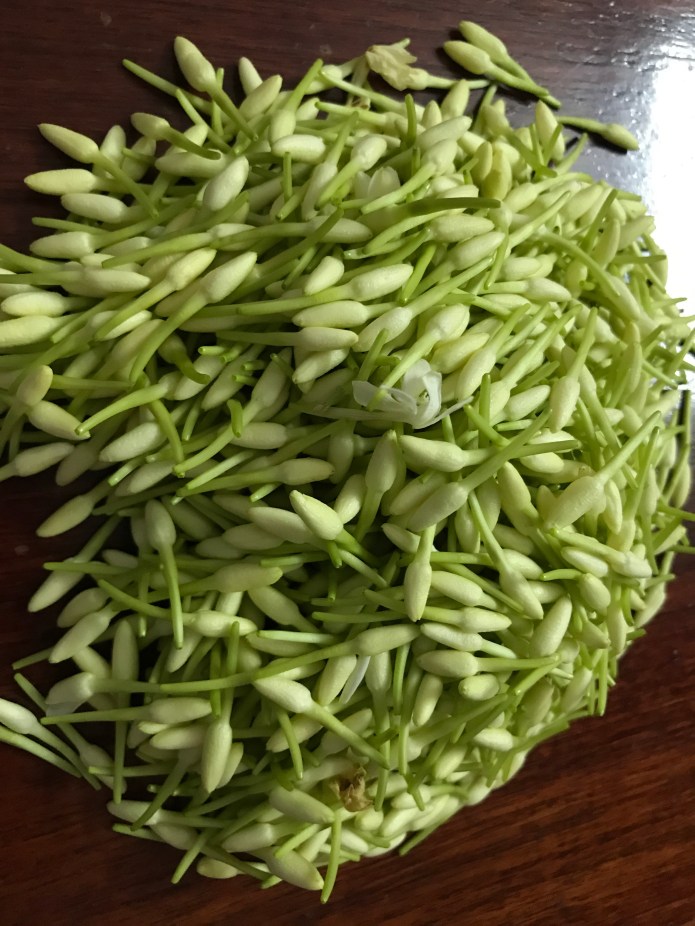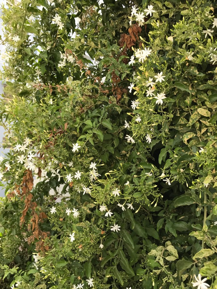 In my parents garden they have a huge Jasmine plant. It has a lot of buds which bloom every single day.