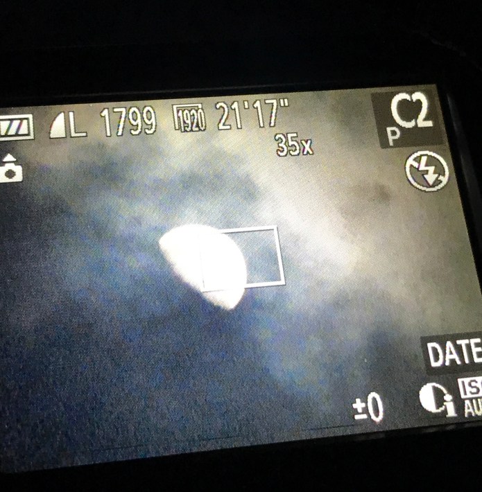 Even though it was partially cloudy, we were able to see the moon with the camera set up at a distant. You are seeing the moon through the viewfinder of my dad’s camera and I decided to take a picture of the moon by using my iPhone 7 plus.