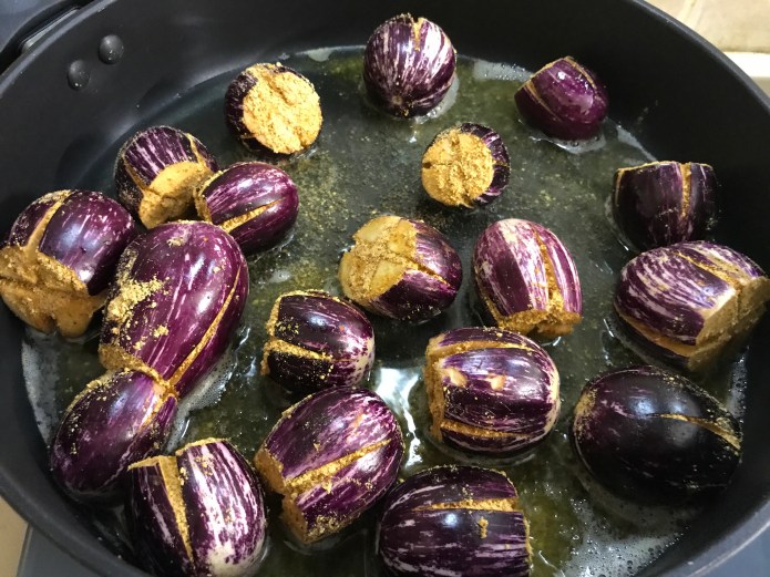 Take small Eggplants like shown in the picture and wash them thoroughly and set aside to drain water and dry.