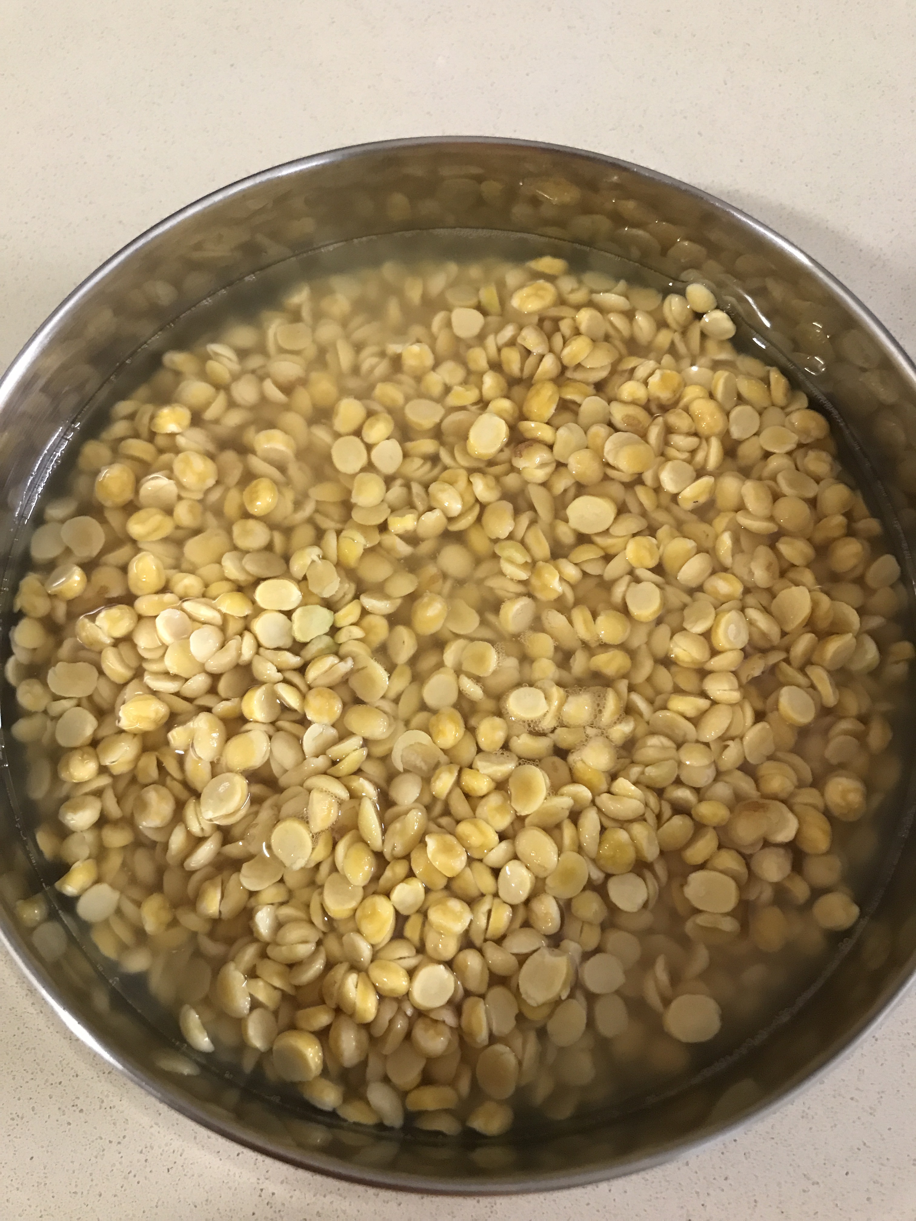 Soak Toor dhal and channa dhal in bowl until the lentil is completely soaked and they stand above the water.