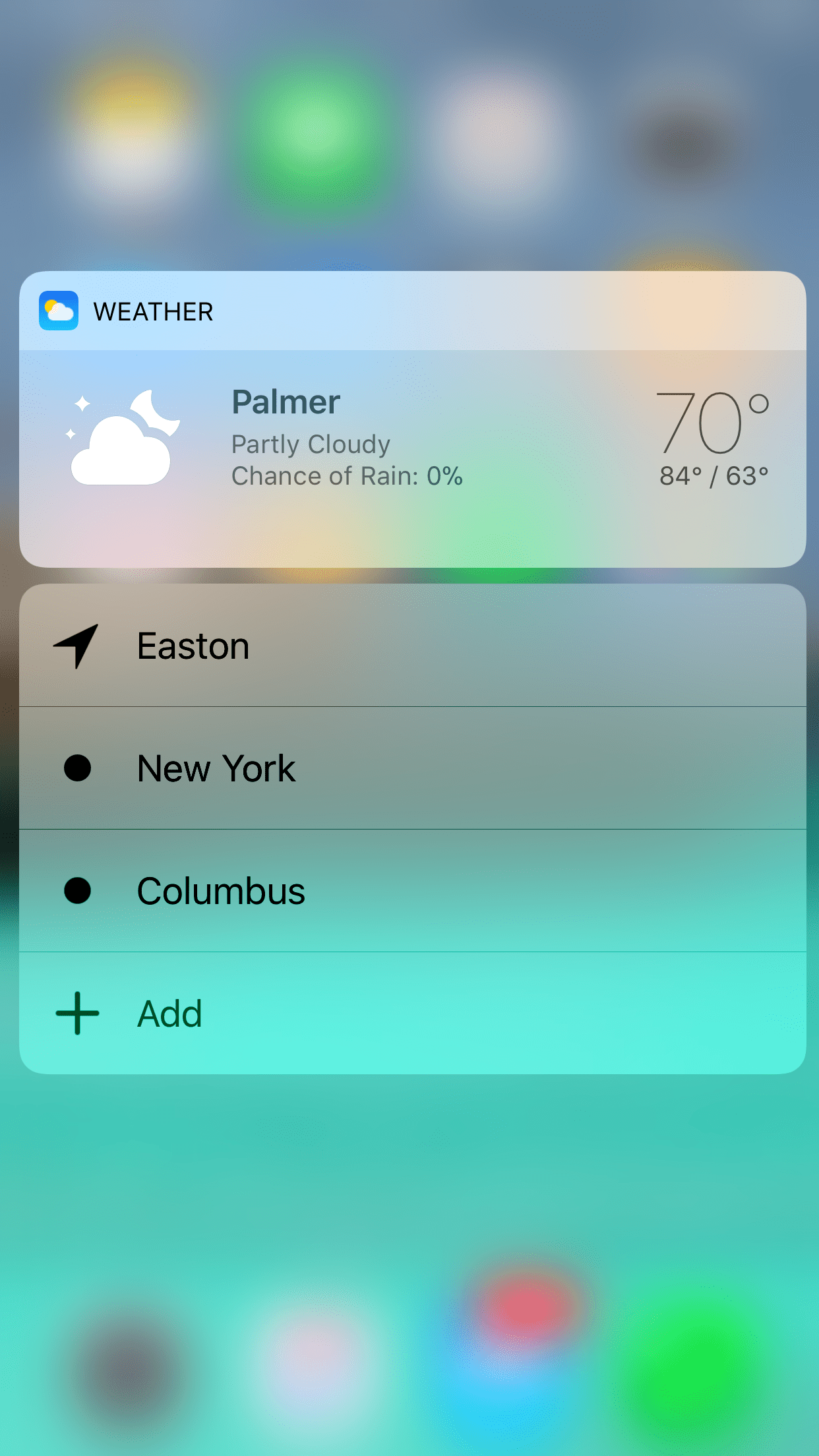3D Touch features are there for all of the apps like the Weather, which gives the weather for your place at a glimpse.