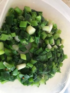 In the same pan add the chopped up green scallion and sauté until the scallion cook.