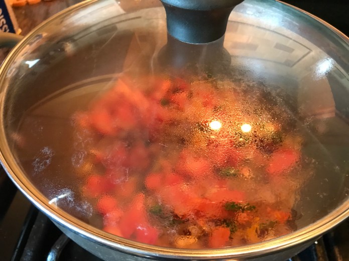 When the onion is cooked from Step-4, make sure to add chopped tomato. Allow the tomato to cook down, having the stove at medium flame. you could cover the pan with the lid so the process of cooking tomatoes would be faster. Using the condensation to keep the tomatoes moist and not dry quickly during the process of cooking.
